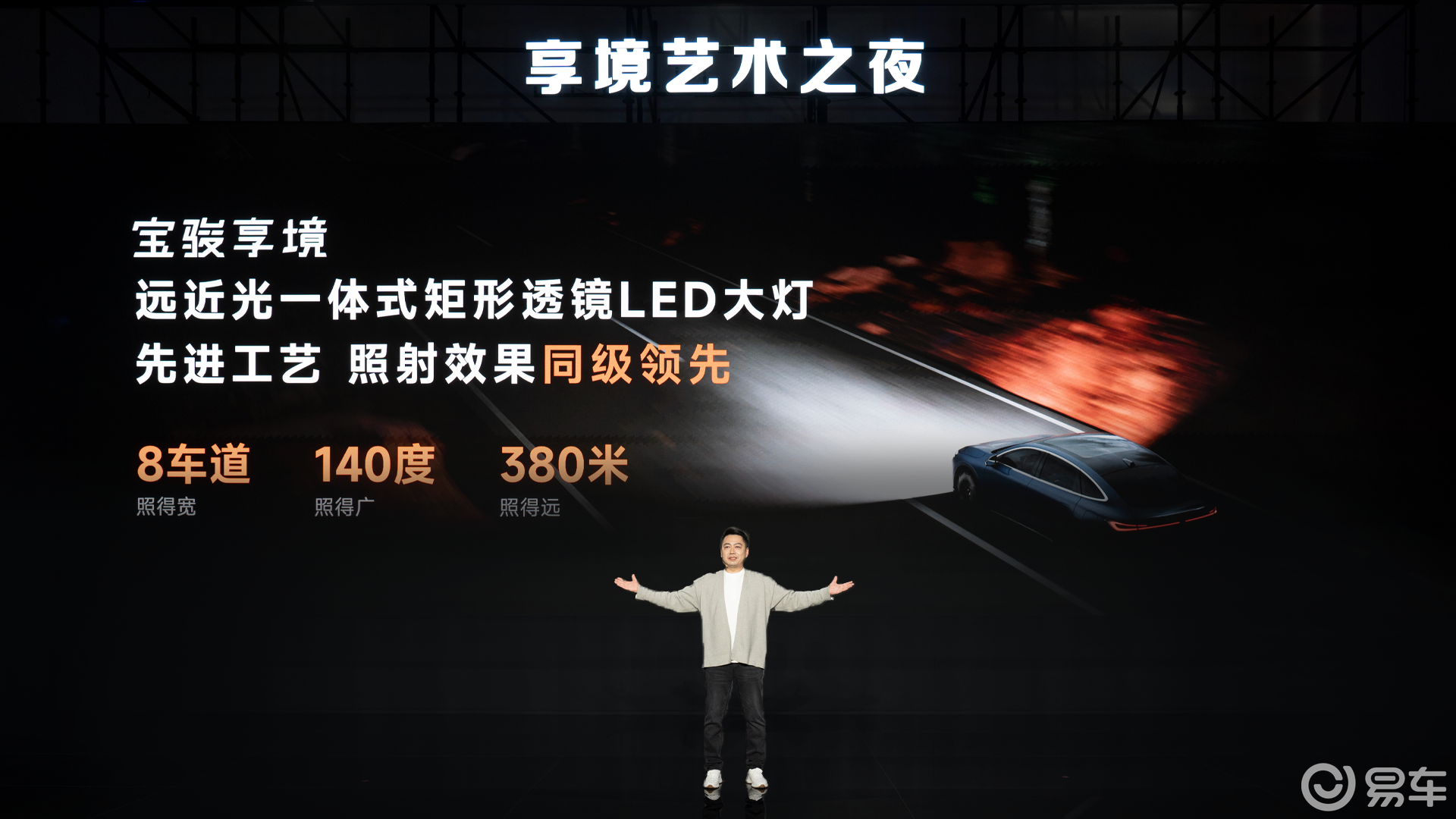 宝骏享境EV版采用家族化流星大灯设计,灯光效果层次分明,展现出昂首驰骋的姿态。