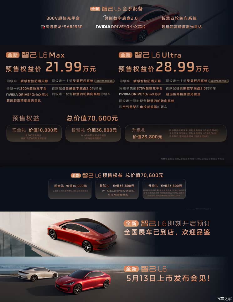新款智己L6预售权益价21.99万起 Ultra版不到30万!5月13日上市