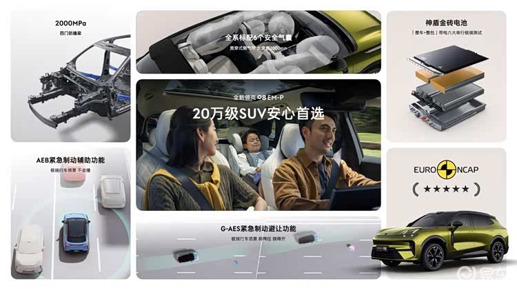安全是领克始终坚守的品牌基因。此前在60米坠崖、120km/h撞击安全岛、81km/h钻卡车等多起真实极端事故中,领克08 EM-P以超标准的被动安全守护用户安全,保持零伤亡记录。近日,领克08 EM-P更荣获2025年欧洲新车安全评鉴协会(Euro NCAP)五星评级,高居2025全球插混车型总分第一,从专业维度再次印证其对用户及道路参与者的安全保护能力,让全家每一次出行都更安心。