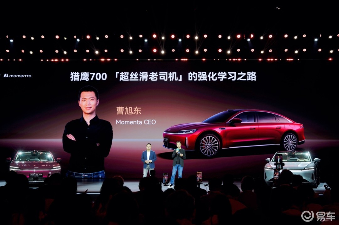 新车在智能化领域实现跨越式进化,猎鹰700版搭载与Momenta合作的高阶智驾系统,配备126线激光雷达和双DRIVE ORIN芯片,算力达560TOPS,支持城市/高速NOA、代客泊车等功能。系统基于强化学习大模型,依托天穹智算中心16000P算力,具备每日2000万公里学习能力,可实现“越开越好用”的持续进化。在实际测试中,系统精准应对临时施工、异形车辆等7大高频场景,如“超级丝滑老司机”般从容。上市活动现场,Momenta CEO曹旭东更是为智驾系统强力打call,强调其“更快、更懂、更可靠”的三大核心优势。此外,风云A9L将通过OTA升级城市记忆NOA、记忆泊车等功能,进一步优化用户体验。AI磁悬浮数字底盘则实现了“起步不抬头、刹车不点头”的极致平顺体验。