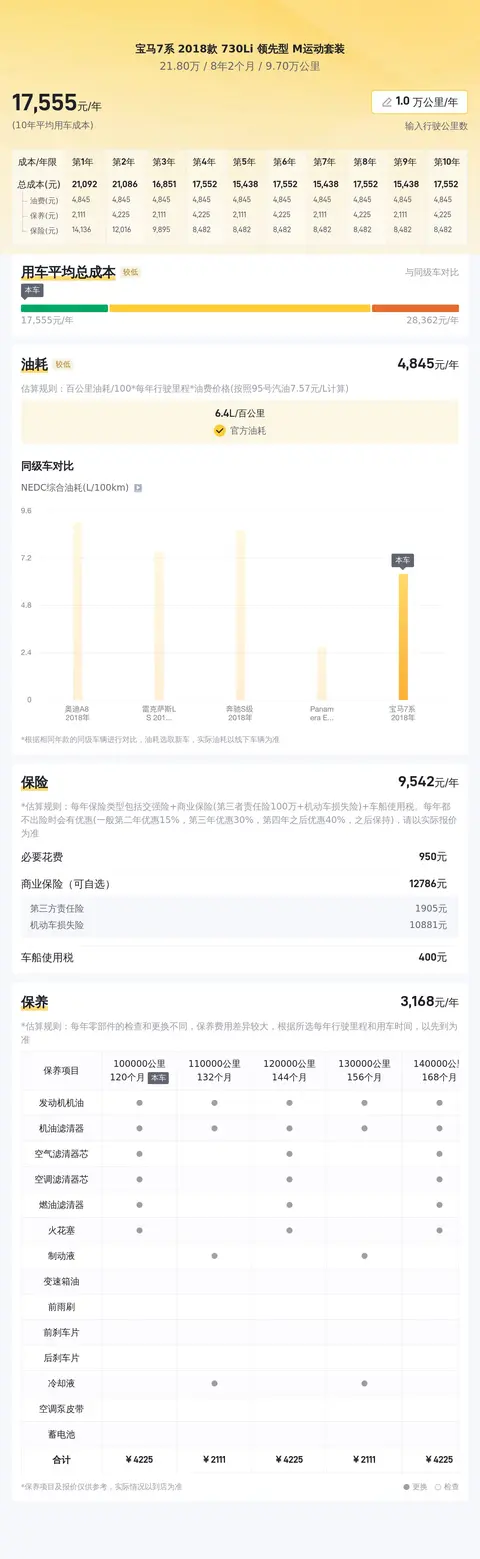 在用车成本方面,根据估算,这辆车的年均综合用车成本约为1.8万元左右。这里要说的是,每个人的用车场景不同,用车成本也会有所不同,这点要以车辆的实际使用情况为准。