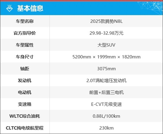 结合大型SUV市场的竞争态势,腾势N8L以契合主流中高端家庭需求的产品定位,在激烈市场中展现出强劲竞争力。其将旗舰级的豪华配置、实用性能与亲民价格相结合,凭借全面均衡的产品力,成为该细分市场中性价比突出的优选车型,为消费者提供了高价值的新选择。