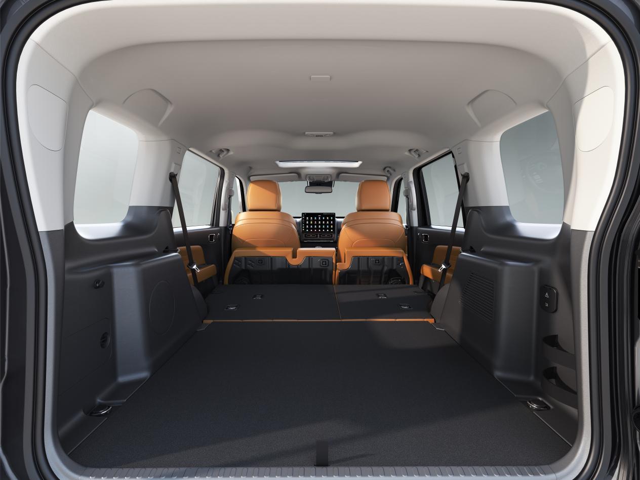 五座版后备箱容积最大1814L(超宝马X3长轴版的1600L),二排座椅支持15°角度调节与纯平放倒,轻松容纳露营装备,或者形成1.8米“露营大床”。全车设31处储物空间,包括中控台下双向开启储物格、门板登山杖插槽。