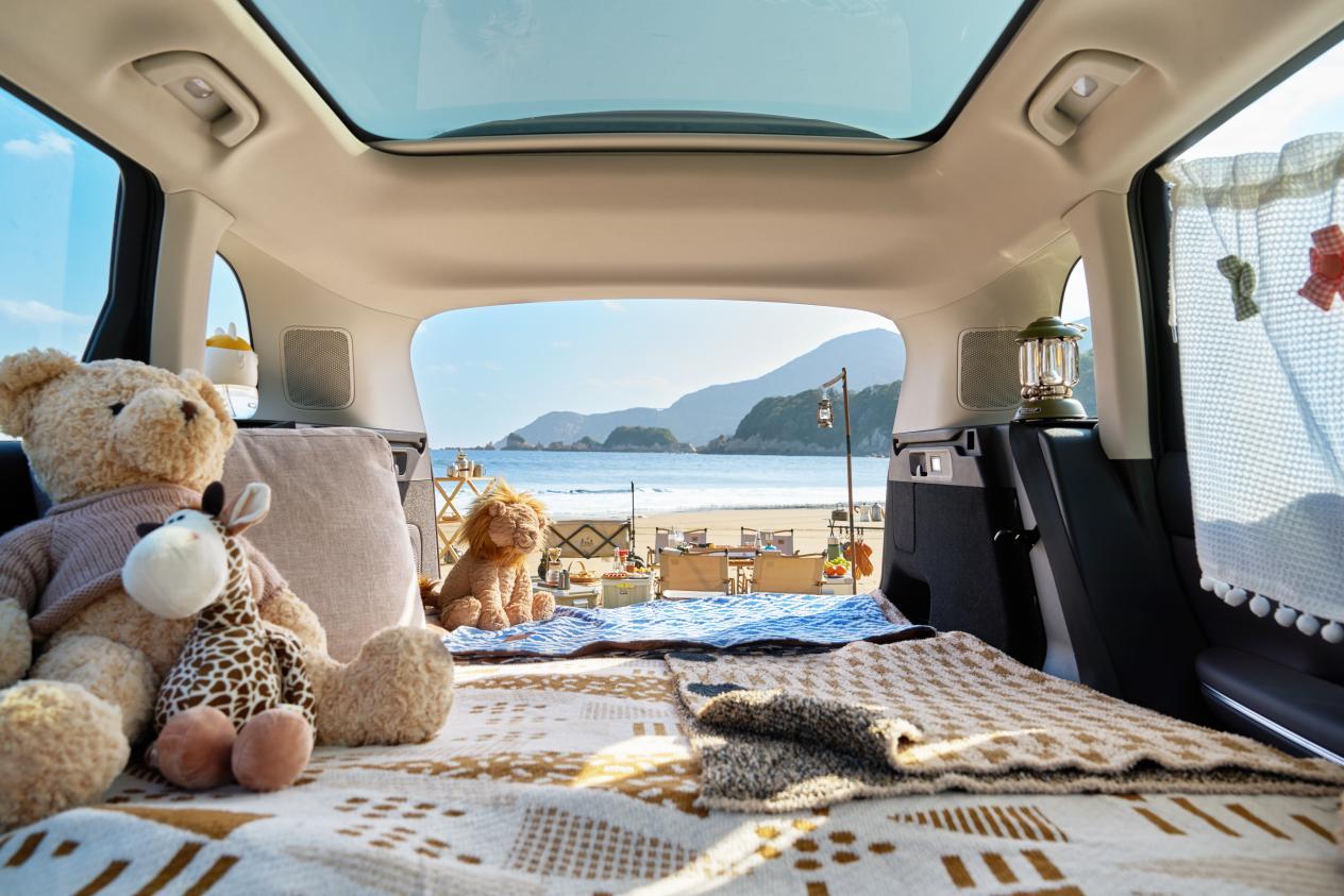 后备箱我俩也试了,两车都很大,放婴儿车、行李箱都没问题。但C10的座椅放倒后,形成的空间更规整,老李说这个好,他偶尔拉点露营装备或者大件东西方便。