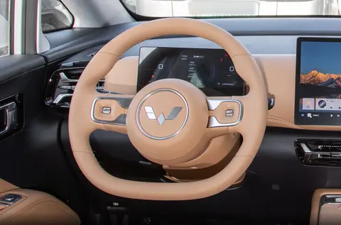 内饰显然不能奢求太多,这个价位确实是要控制用料成本的,但不可否认这次五菱也带来了不错的软包覆盖,至少内饰的精致感相比外观是要强一些。再加上12.8英寸的悬浮中控车机屏幕,尺寸虽然不大但基础的智能化交互还算比较流畅。