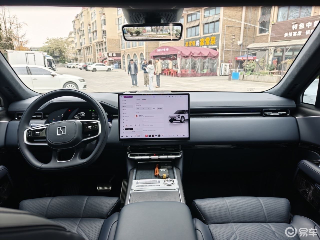 极氪9X的内饰则更显“奢华”,大量的水晶切割按键、悬浮式大屏、分区氛围灯与暗色音响罩的组合,把“奢华感”很外露的表现出来。前排门把上布置了复杂的实体按键,操作逻辑稍显复杂。细节上有些点很有意思,包括中央操纵台两侧使用的是实木,而不是大家常用的皮革包裹。另外试驾车采用的是单块中控屏幕,而没有选装副驾屏,这其实显得副驾IP台更垂直、更符合硬派的特征。