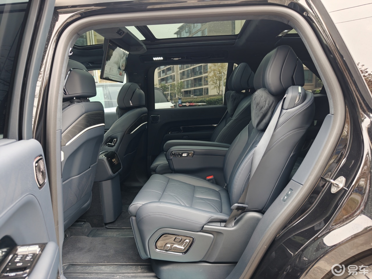 相比蔚来ES8第二三排非常传统的设计,极氪9X的后排设计有创新、也有槽点,更值得多说两句。首先是极氪9X搭载了可滑动的17英寸后排屏,主要是为了配合全景天窗设计,不用像常规设计那样遮挡,所以内部通透感更好。但它的第二排独立座椅又把座椅调节放到了座椅上、而非像前排一样放在车门上,所以换到后排后很不习惯。而且座椅和车门靠得比较近,伸手去调节座椅很容易因为手表的原因而卡住。