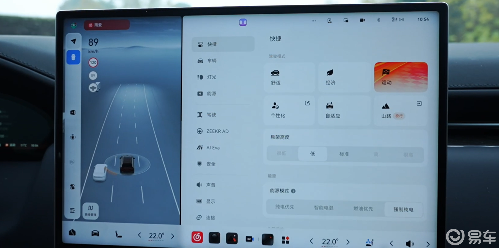 所以如果你想在山路或者城市道路开起来更愉悦一点,选择运动模式,或者在舒适模式里面把除了动力之外的设定都调到“标准”,其实整个的体验会更好,虽然底盘会偏硬一些,但是至少不会觉得拧巴。