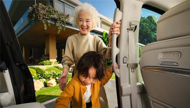 最后再和大家分享一个至境世家人无我有、人有我更优的体贴设计,乘客上车时车辆的云台式超低礼宾空悬能够让车身平稳降低60mm,门槛高度仅有355mm,老人、小朋友都能轻松入座。