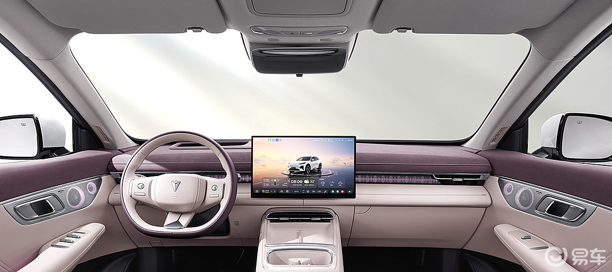 车内方面,深蓝S07的座舱采用了“游艇式环抱”布局,提供暮烟紫、月雾灰、热浪橙三种配色选择。