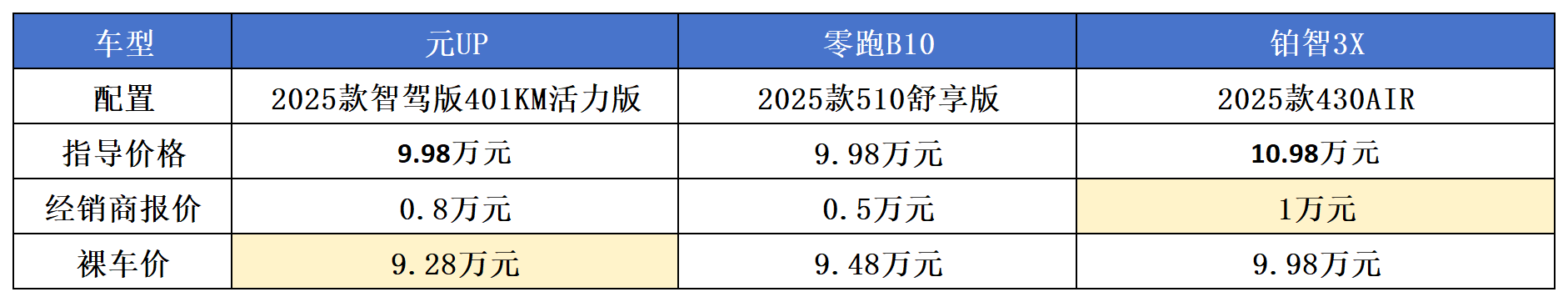 补贴调整,十万内预算,元UP、零跑B10和铂智3X谁更值