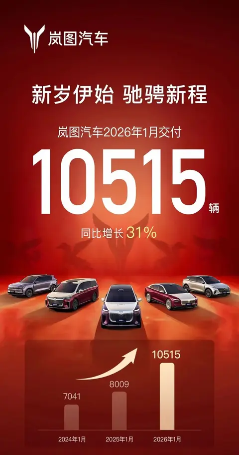 至于「蔚小理」中的小鹏,在加入了增程阵营之后,效果已经开始显现。小鹏汽车在2026年1月共交付新车20,011台,其中小鹏X9单月交付4,219台,同比增长413.9%。