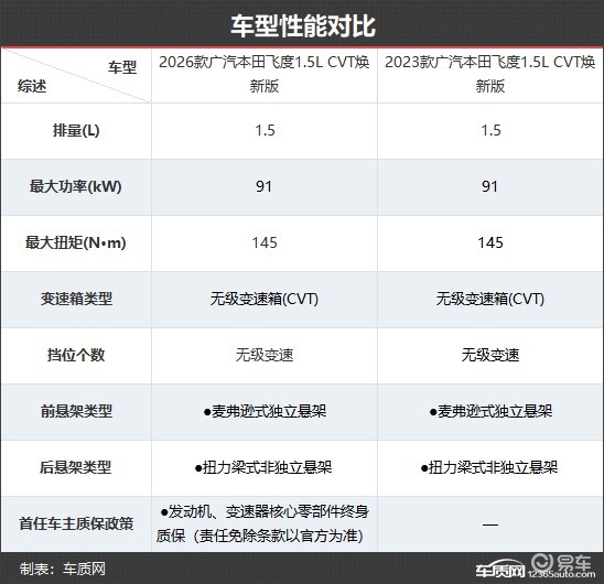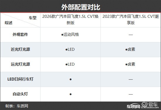 2026款广汽本田飞度仅提供1款车型,车型数量与2023款相比进行了精简。本次对比选择了老款入门车型进行对比,看看这款小型车是不是带着满满的诚意而来。