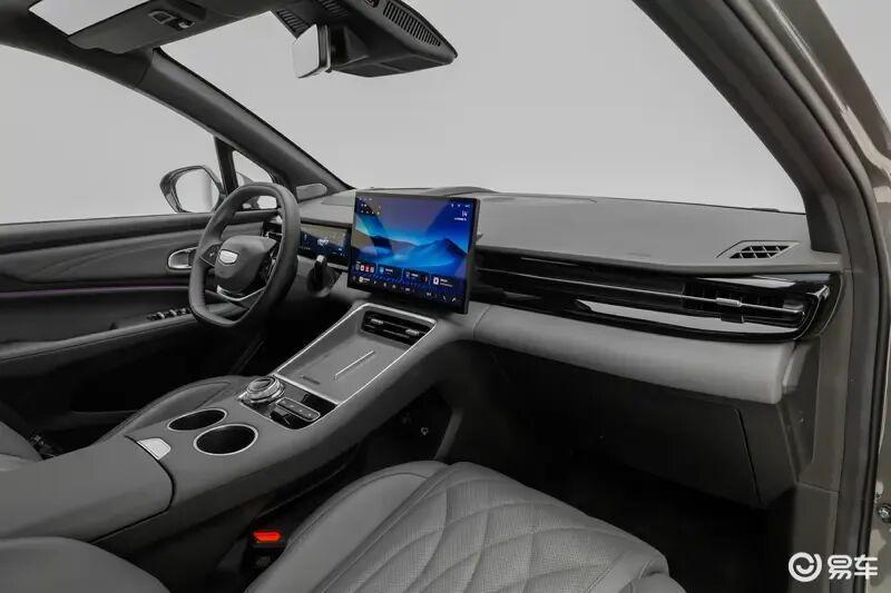 内饰方面,座舱采用环抱式设计,有霞光棕、星夜灰等内饰配色可供选择,前排座椅采用大沙发级舒适设计,配备女王副驾配备电动腿托,最大可调至80°。
