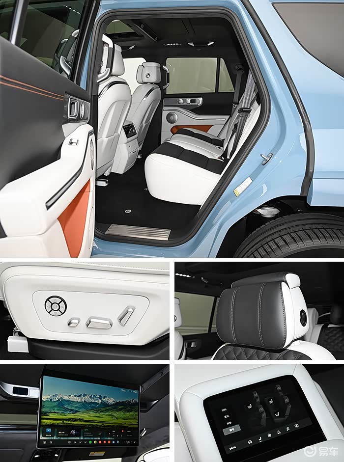 全新坦克700定位中大型SUV,车身尺寸方面,新车的长宽高分别为5105/2062/1985毫米,轴距达到了3米,庞大的车身保证了其长途旅行时的乘坐宽裕度。与此同时,前排还提供20向座椅电动调节,并支持180°放平,后排可进行141°无极电动调节。当然,像座椅加热/通风以及10点位按摩等舒适性配置也是一应俱全。相信通过座椅的不同组合,能实现家用和商用两不误。